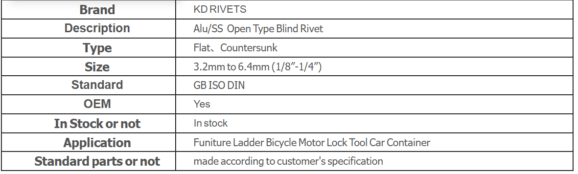 产品名称:铝/不锈钢开口型大法兰抽芯铆钉